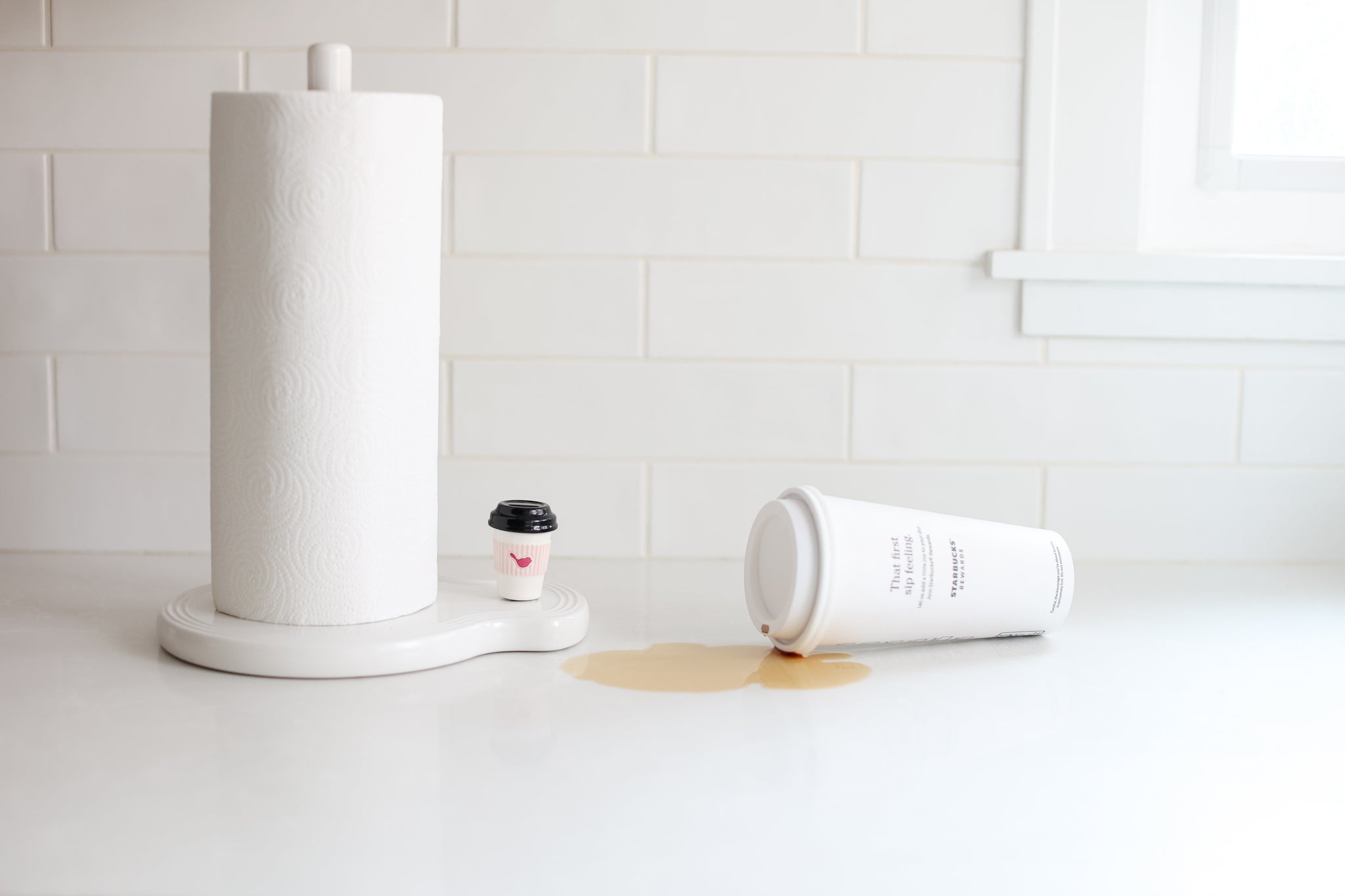 Clean up is a breeze with this nora fleming pinstripe melamine paper towel holder! You'll always have your towels on hand with a cute mini on display!