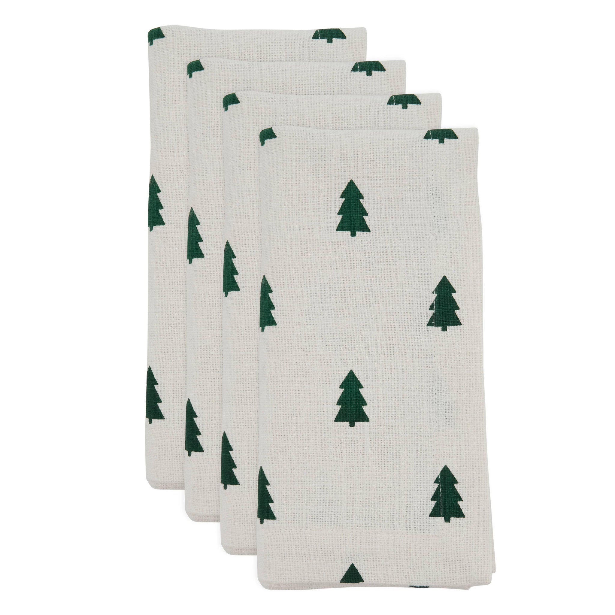 This lovely set of Christmas Tree Table Napkins makes a wonderful addition to your holiday tabletop. It features light tones for the background and classical green for the trees, which makes it easy to fit within any existing holiday décor. Made with 100% cotton, the set brings quality, softness, and durability to the table.