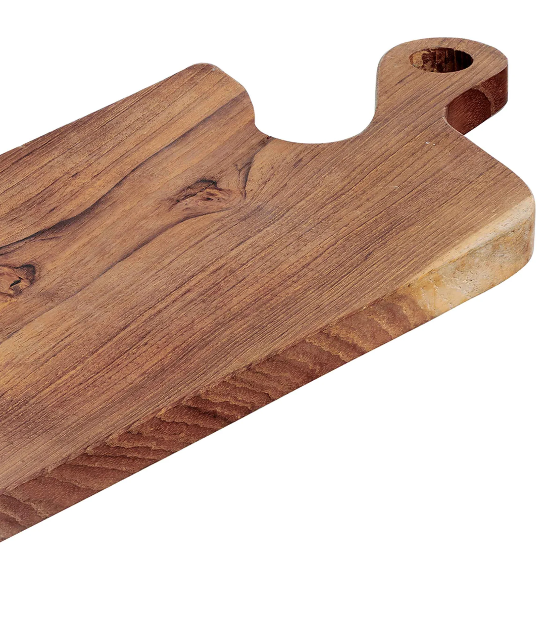 Transform any occasion into a decadent affair with our Chiku™ cutting board paddle. Its versatile design is perfect for entertaining, while the finely hand-sanded teak wood adds a touch of natural beauty. This is the perfect sized board for gifting to loved ones, whether it be to congratulate them on new home ownership or to toast them in a new chapter of their life. This board is a hosting essential that will stand the test of time!